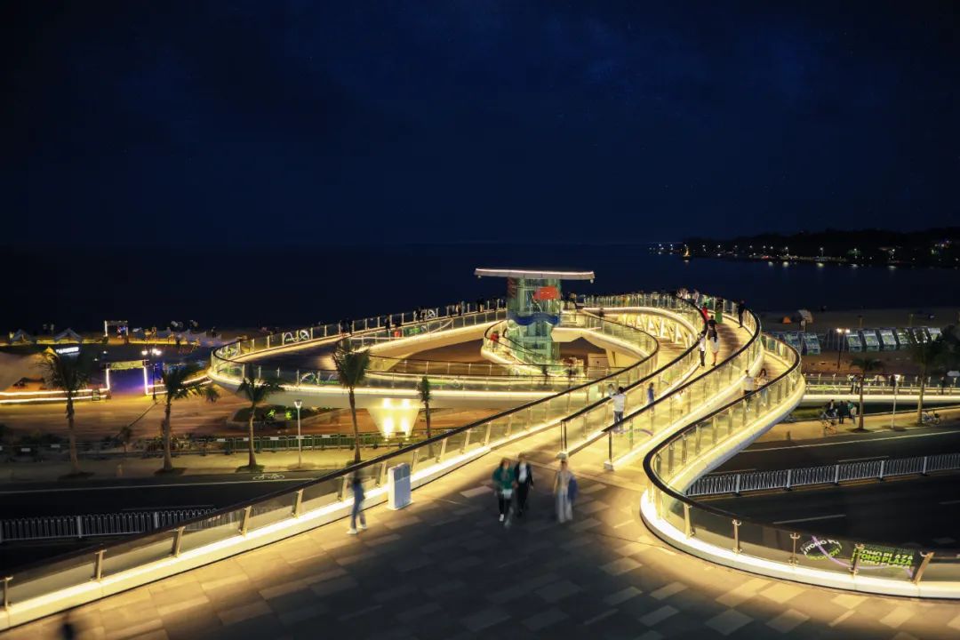 項(xiàng)目建設(shè)中,珠海正方城市發(fā)展集團(tuán)有限公司銳意創(chuàng)新,組織多方設(shè)計(jì)資源,堅(jiān)持“通達(dá)山海,構(gòu)建情侶路浪漫風(fēng)情景觀帶慢行系統(tǒng)重要活動(dòng)節(jié)點(diǎn)”和“創(chuàng)新形象,打造城市全新名片”的理念,采用同心結(jié)回旋式無障礙坡道設(shè)計(jì),在滿足行人游客上下橋需求的同時(shí),巧妙呼應(yīng)了情侶路浪漫的愛情主題;創(chuàng)造性地采用雙層鋼箱橋面——桁架組合結(jié)構(gòu),大幅降低鋼箱高跨比;狠抓施工細(xì)節(jié),高品質(zhì)打造天橋飾面效果,在保證安全性與便捷性的同時(shí),提升市民游客的觀景體驗(yàn)。
