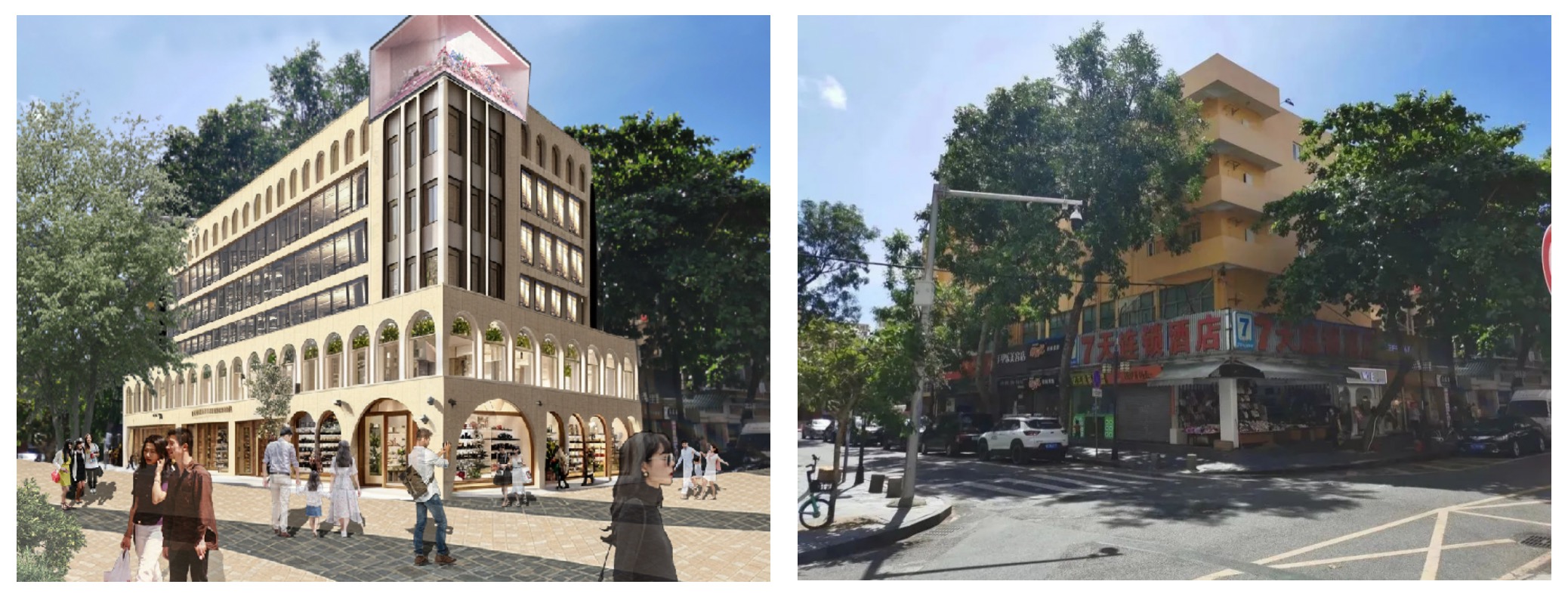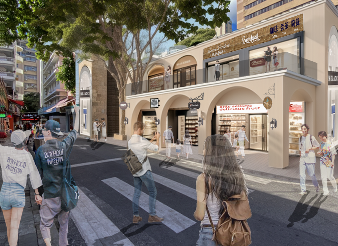通過對片區(qū)不同位置、節(jié)點(diǎn)的劃分,進(jìn)行街區(qū)分級改造。從具有葡澳特色風(fēng)格的牌坊作為形象展示窗口吸引客流進(jìn)入,到臻選樓棟設(shè)計(jì)師打造一樓一景,引導(dǎo)人流進(jìn)入片區(qū)的核心。香洲埠將用借助歷史和現(xiàn)代的碰撞,吸引更多的新生代人群,延續(xù)百年商埠的煙火氣。
