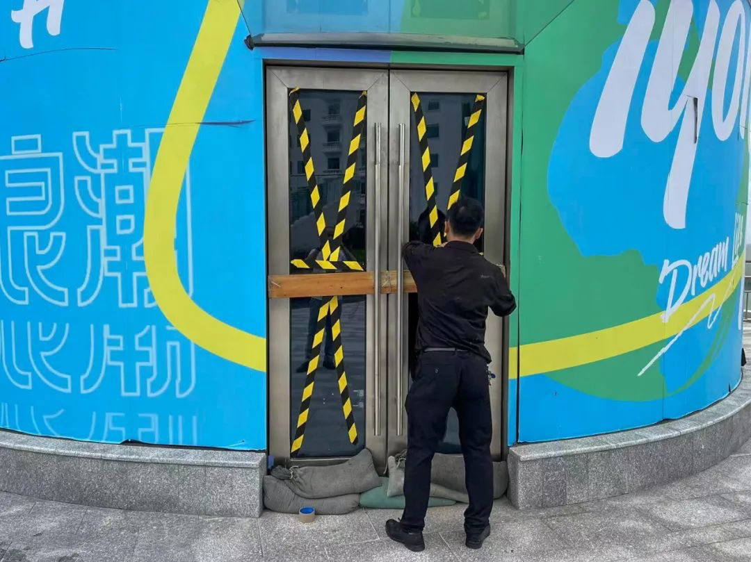 此外,正方集團(tuán)情侶路沿線在運(yùn)營商場(chǎng)也迅速開展排水口清掏清理、大型玻璃與廣告牌加固工作;對(duì)城市陽臺(tái)人行天橋進(jìn)行封閉保護(hù),電梯斷電升頂、物資轉(zhuǎn)移,并完成三防物資的盤點(diǎn)工作,確保排水設(shè)施良好,應(yīng)急物資充足。