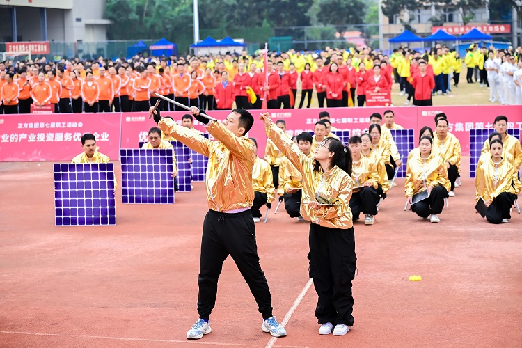 率先出場的是護(hù)旗手,他們步伐整齊、氣宇軒昂,護(hù)擁著國旗向主席臺走來,展現(xiàn)著正方人矢志不渝、篤行不怠的精神。正方集團(tuán)及各下屬公司代表隊緊隨其后,依次入場。代表隊帶來了精彩紛呈的風(fēng)采展示,將各公司的特色融入表演,打造了一場別開生面、百花齊放的盛大演出,贏得了現(xiàn)場經(jīng)久不息的掌聲。