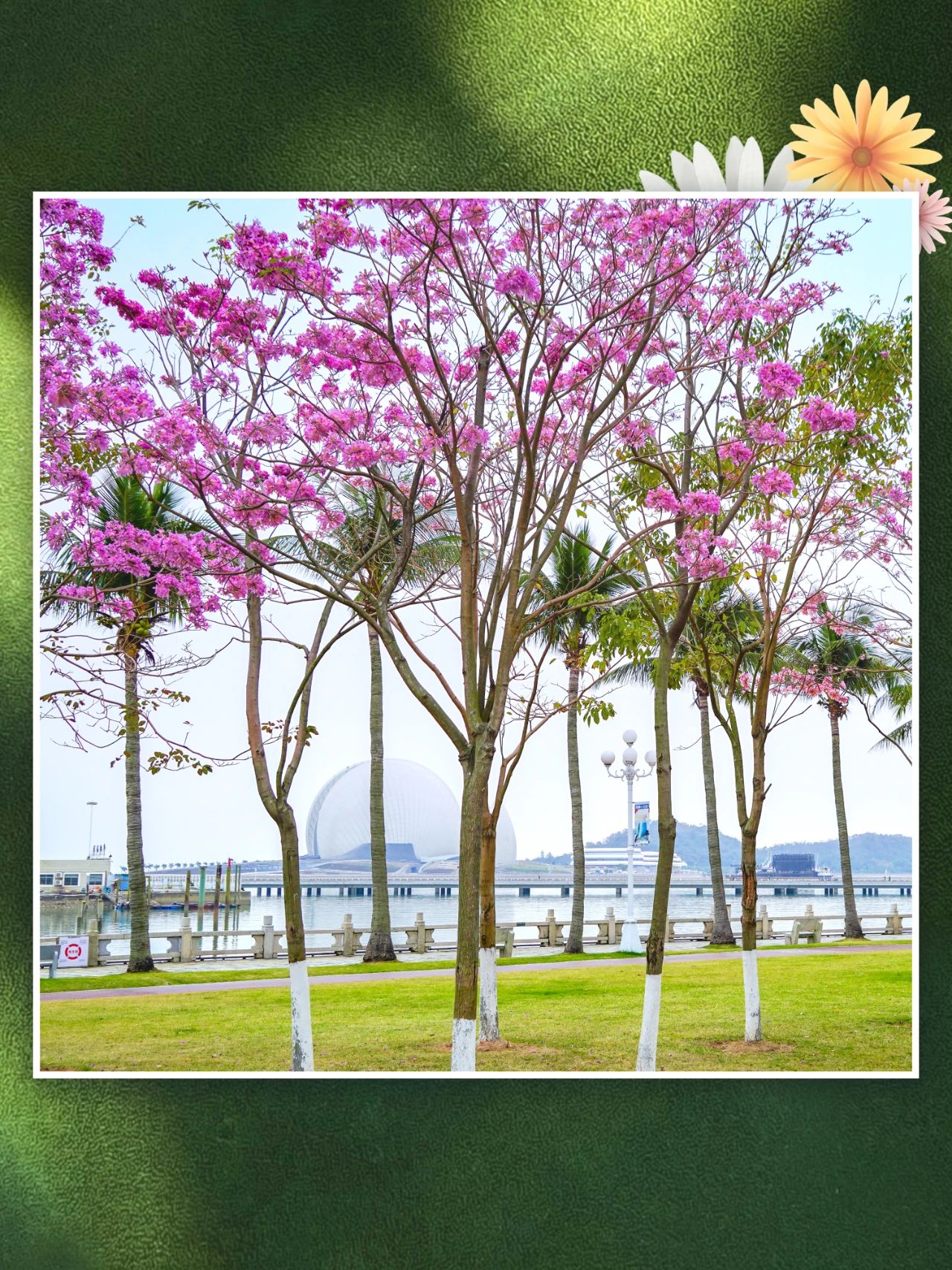 金黃的黃花風(fēng)鈴木、粉嫩的宮粉紫荊