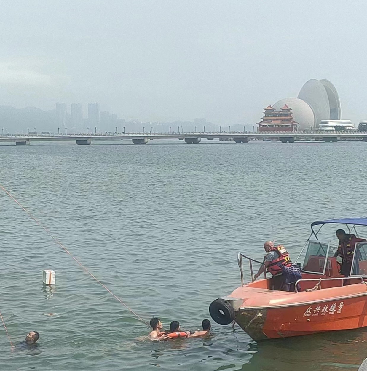 接到支援呼叫,黎啟成跳上自行車飛奔而來。憑借多年的救生員工作經(jīng)驗(yàn),黎啟成沉著冷靜分析現(xiàn)場(chǎng)救援情況,果斷跳入海中。三人協(xié)力托起落水女子,一邊安撫情緒,一邊將女子拖往岸堤較低處救助。在水中艱難前行了約200米后,派出所呼叫的救援船趕來,將四人救助上船。隨后經(jīng)醫(yī)務(wù)人員檢查,確認(rèn)該女子身體無大礙。