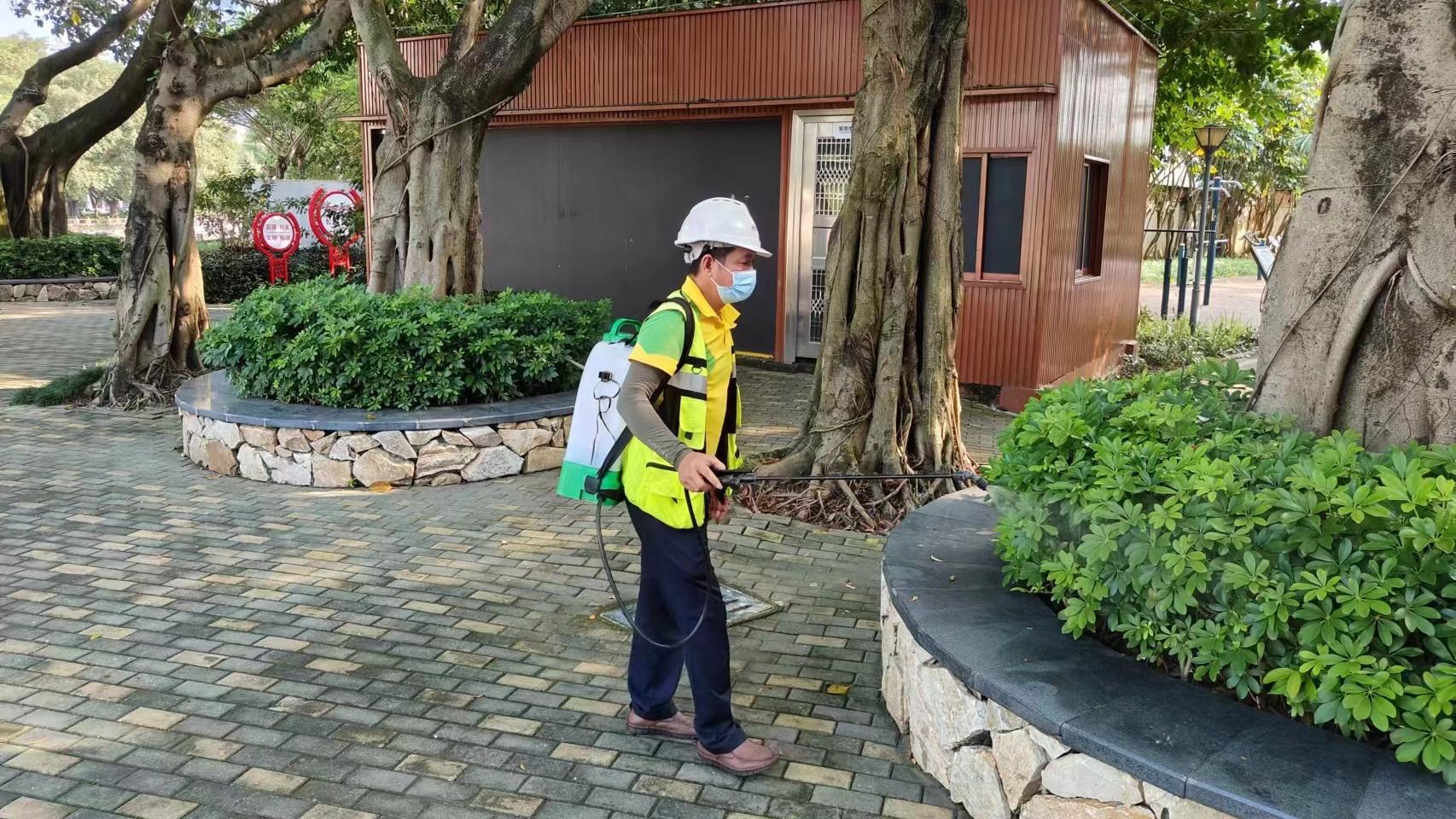 為提高成蚊消殺效率,園區(qū)于伊蚊活動高峰期17時至19時開展消殺。重點(diǎn)針對綠化帶、地下車庫、樓道等蚊蟲棲息地精準(zhǔn)消殺,有效降低成蚊密度。園區(qū)室內(nèi)辦公場所在同一時段關(guān)閉門窗,采用滅蚊片、殺蟲劑等方式同步滅蚊,確保室內(nèi)外聯(lián)動,實現(xiàn)“一盤棋”滅蚊。