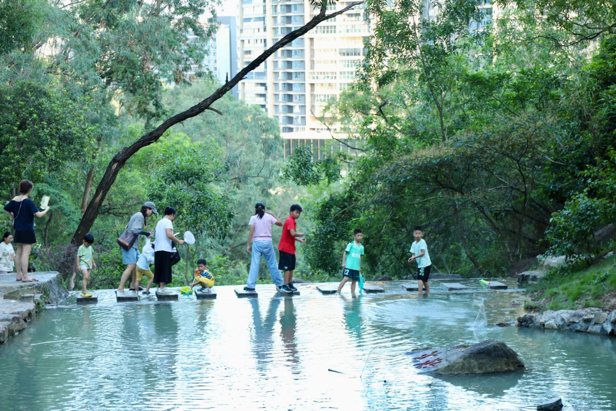 10日正值周日,公園游人熙攘。家長(zhǎng)們紛紛帶著孩子登高望遠(yuǎn),亭臺(tái)歇腳、水邊嬉戲,盡享假日閑適?!案脑旌蟮墓珗@變得更美了?!币幻麃?lái)此游玩的市民笑呵呵地說(shuō)道。