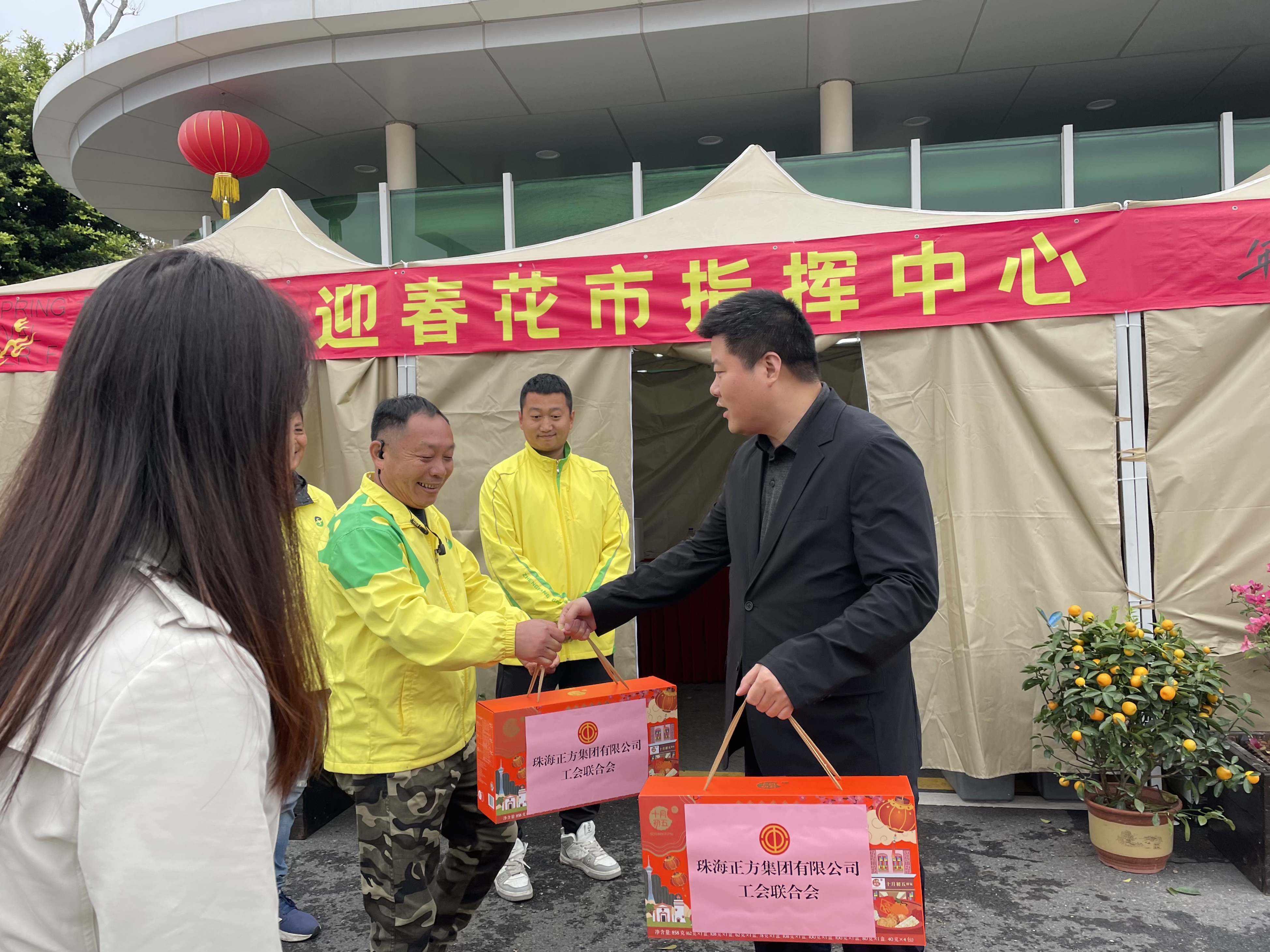 為傳承廣東非遺文化,滿足市民過年“行花街”的需求,正方文旅公司承辦2024年珠海市迎春花市,職工們于花市現(xiàn)場奔忙,助力花市順利開市。正方集團(tuán)黨委書記、董事長唐亮,正方集團(tuán)黨委委員、工聯(lián)會主席黃少蘭來到海天公園、香山湖公園慰問現(xiàn)場工作人員,感謝大家為花市保駕護(hù)航,并致以新春問候和誠摯祝福。